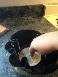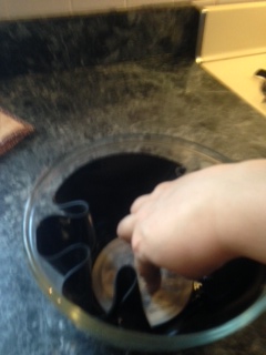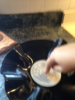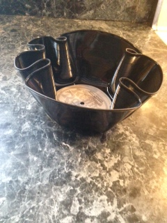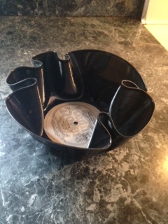 It’s just what it sounds like; you make a record into a bowl. Younger folks may not know what a record is. A record is a vinyl disc that when played on a record player creates the sound of music. The needle of the record player some how translates the grooves in the vinyl into sound, and sends it through speakers. Viola, music! I still think it’s magical.