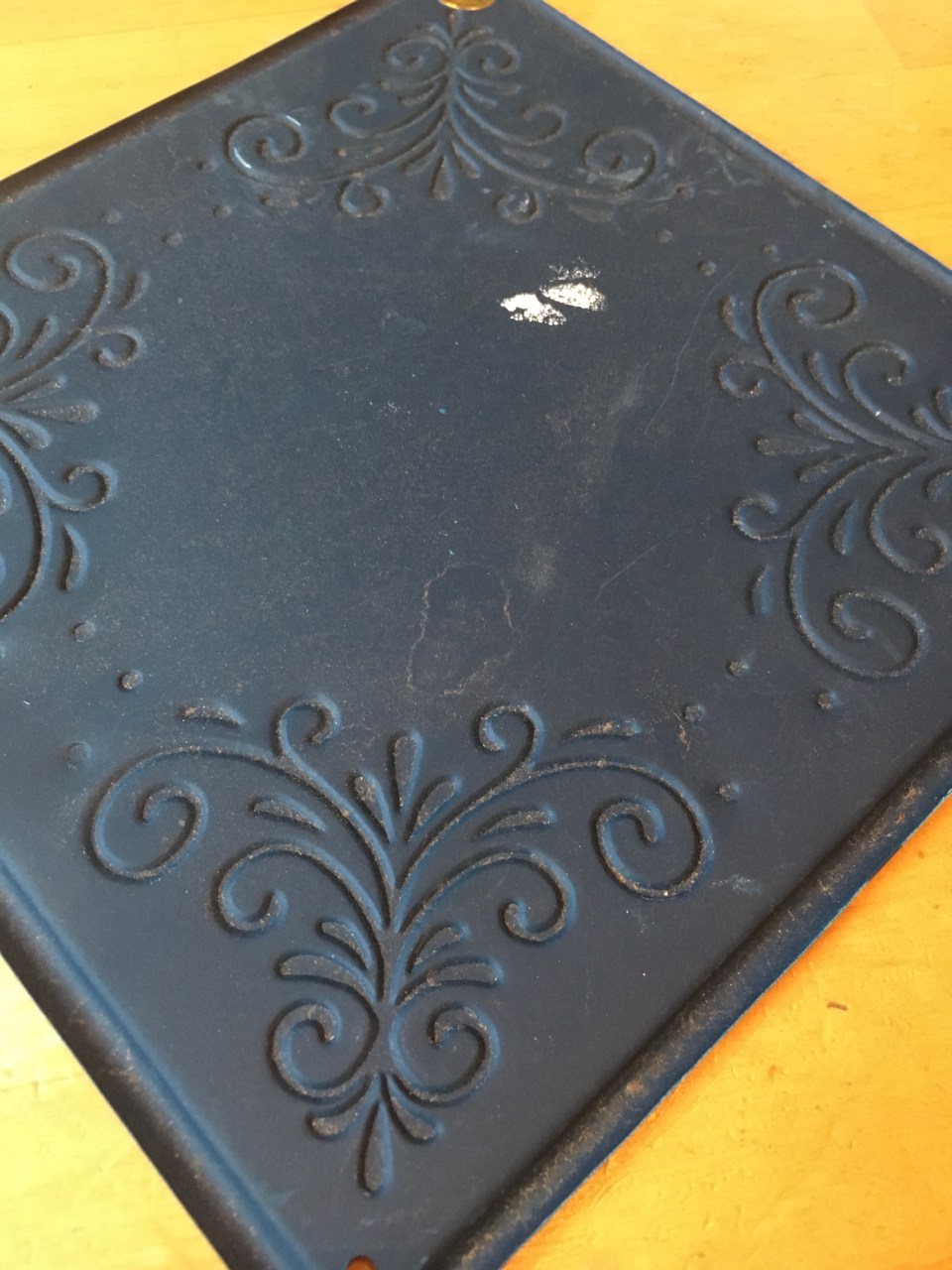 I found this metal Christmas decoration at the consignment shop. I actually bought it because of the raised scroll-work.