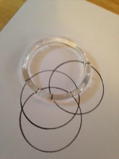 Step two: Find the tool that you will use to make the circles with. I actually use a clear plastic ring, the kind that they sell scarves on. It is 3 inches in diameter. It isn’t too thick or too thin, allowing me to hold it sturdily while I trace the circle on the inside. I imagine some of the plastic and wood and bracelets that I have much like this would work well, too. It is also important to make sure that the inside where the pencil will follow along is smooth so that the circle made is clean and crisp.