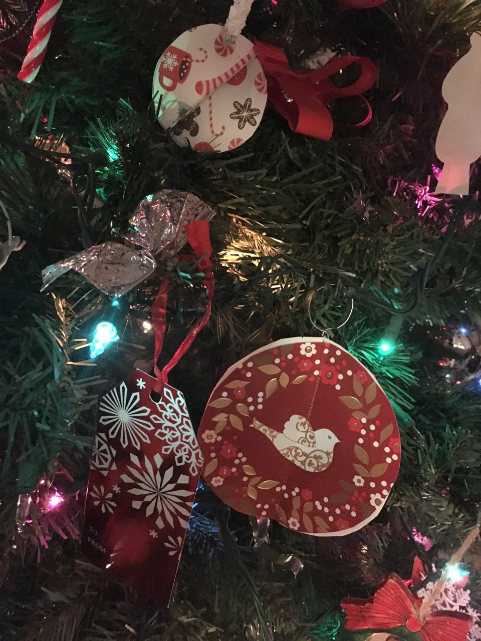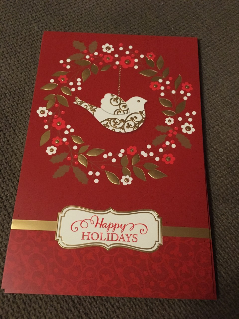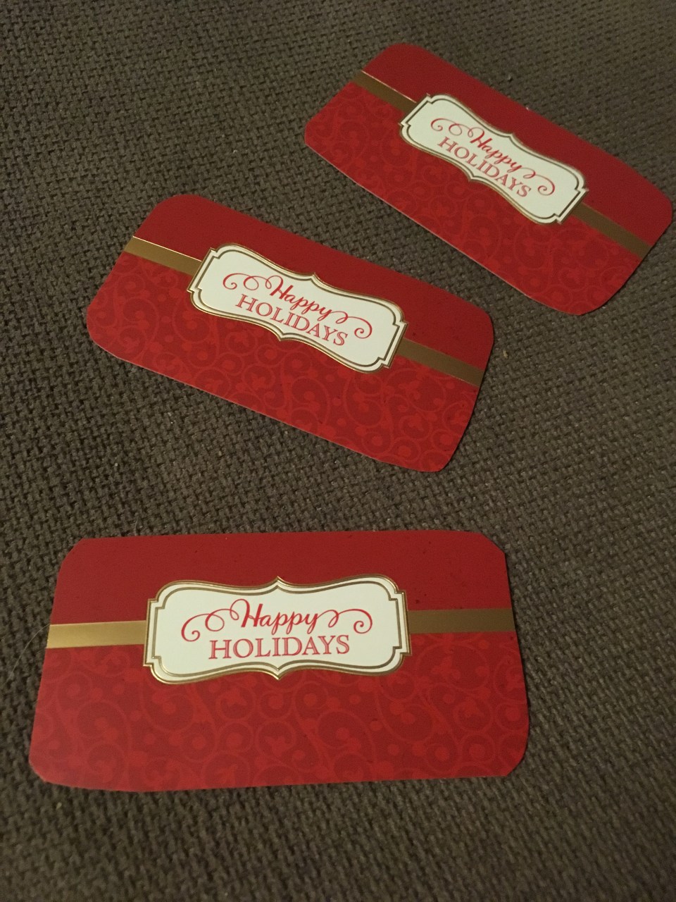 This card has a “Happy Holidays” message on the bottom that I cut into gift tags.